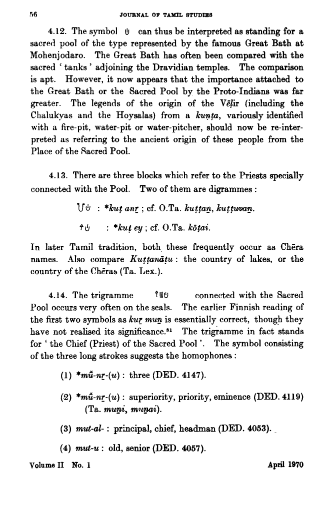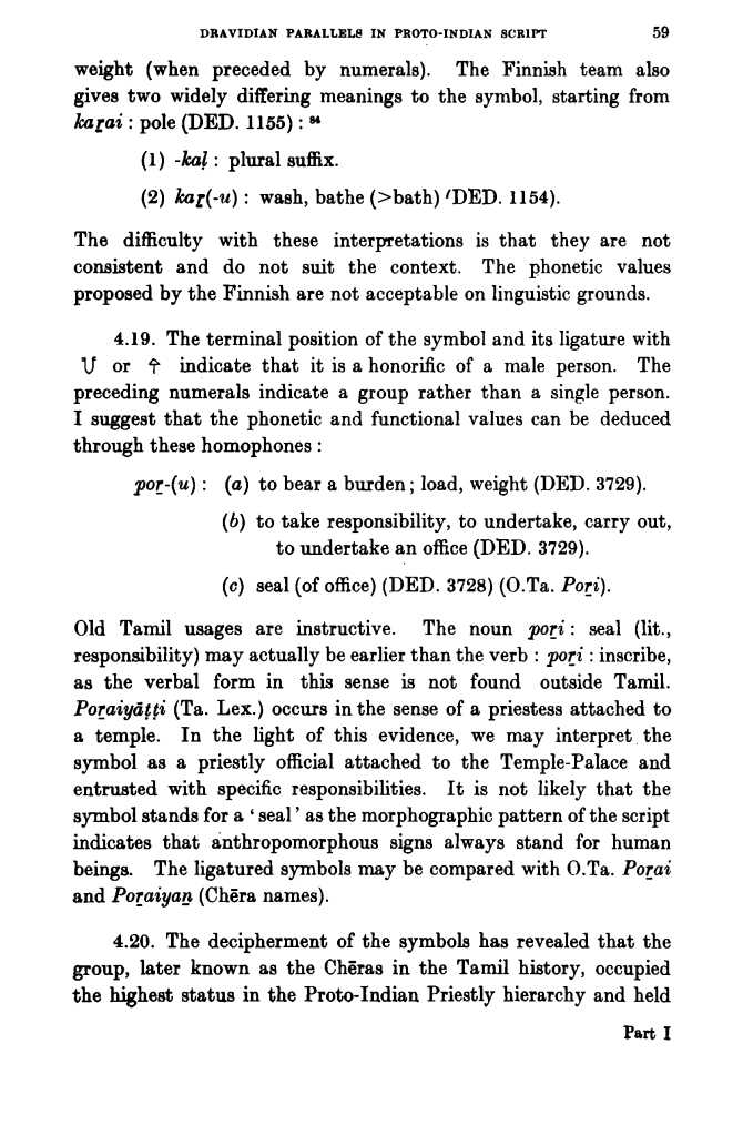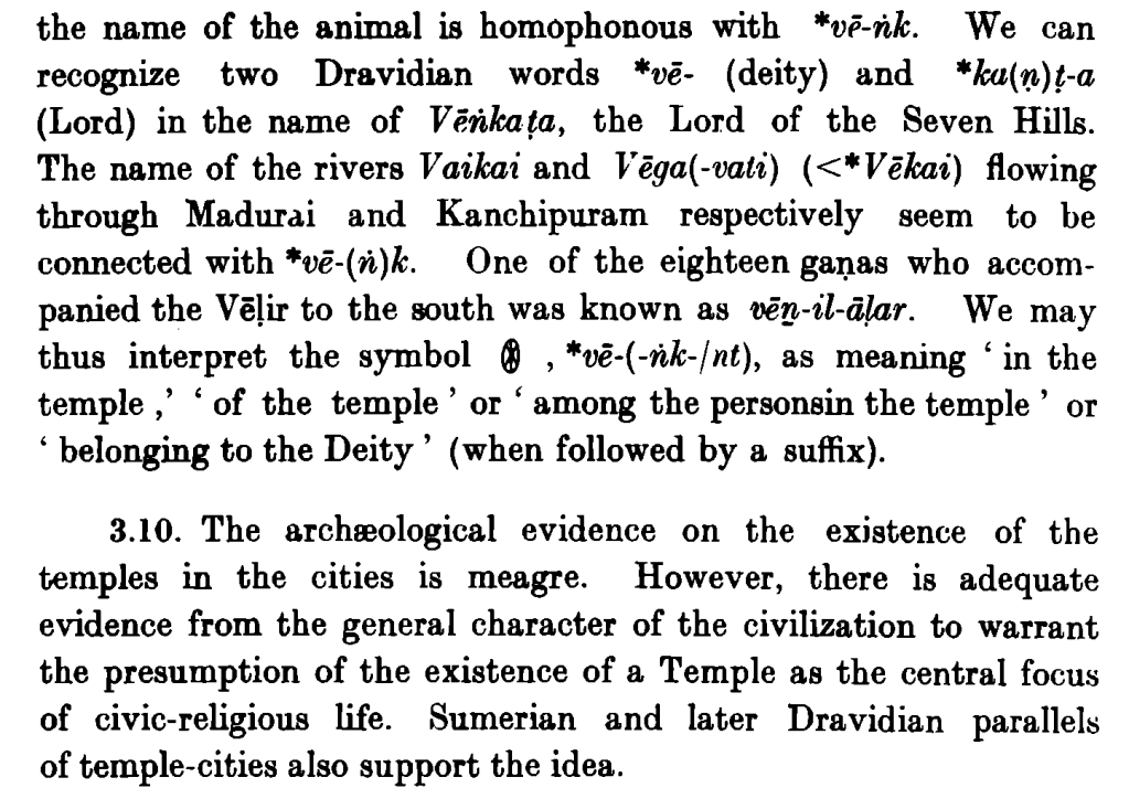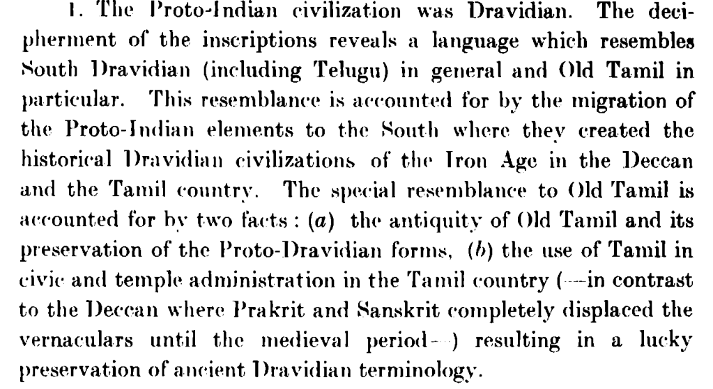 These excerpts are from his article in the Journal of Tamil Studies – Dravidian Parallels in Proto-Indian Script (The full article – http://rmrl.in/wp-content/uploads/2014/02/papers/1.pdf )