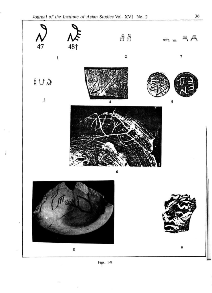 (b) The basic Indus ideogram for ‘deity’ occurs often, presumably as a religious symbol, in the pottery graffiti from the Megalithic burials at Sanur in Tamilnadu (Fig.6)
